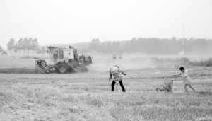 布谷声声叫,麦浪香,机声隆隆响,收割忙。