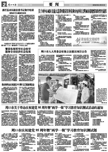 周口市关于举办庆祝建党95周年暨“两学一做”学习教育知识测试活动的通知