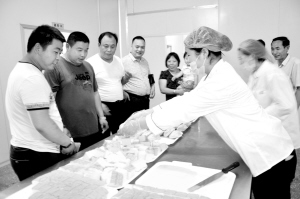 昨日,坐落于周口经济技术开发区的河南省美味鲜食品有限公司品尝台前迎来品尝、咨询的群众。该公司主要生产多个系列几十个品种的小面包、小糕点等。夏季来临,开发区注重对引进食品企业的卫生监管,在辖区内适时开展食品企业安全生产检查,保障食品的生产安全和质量安全。记者 沈湛 摄