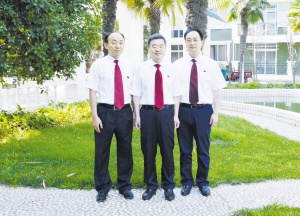 新当选的中共沈丘县十二届委员会书记皇甫立新(中)、副书记刘国庆(左)、贾庆伟。 迟驰 摄