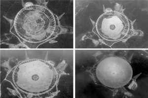 这张拼版照片为FAST项目拼装第一块反射面板(左上,2015年8月2日摄)、FAST反射面板安装近半(右上,2015年12月16日摄)、FAST项目反射面板安装近八成(左下,2016年3月9日摄)、FAST项目反射面板安装完成(右下,2016年7月3日摄)。新华社发
