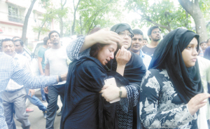 7月2日,在孟加拉国首都达卡,一名人质的亲属在袭击现场附近哭泣。孟加拉国军方2日表示,首都达卡一家餐厅1日晚遭武装分子劫持,目前已有20名人质遇害,6名武装分子被打死。新华社发