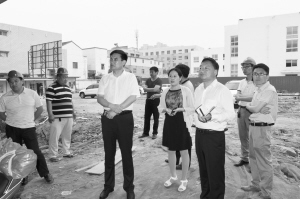 今年以来,开发区扎实开展“项目建设推进年”活动,实行“一线工作法”,狠抓重点项目建设。图为开发区管委会主任田林到韩营学校改扩建项目现场进行督导。 王亚东 摄