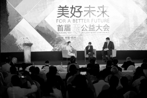 首届“XIN”公益大会在杭州开幕 7月9日,在“XIN”公益大会上,姚基金创始人姚明(右)和壹基金创始人李连杰(中)就“以心践行”展开对话。当日,由杭州市人民政府、阿里巴巴公益基金会主办的首届“XIN”公益大会在杭州开幕,大会分为主论坛和5个分论坛,分别就教育、互联网公益、环保、救援、医疗等5大方面公益话题展开探讨。本次公益大会旨在推动建立人人参与的公益文化,探索“XIN”公益的新模式和新思路,促进中国公益事业可持续发展。新华社发