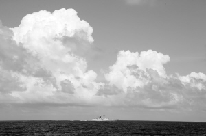 7月8日,海军在海南岛至西沙附近海空域组织实兵实弹对抗演练。参演部队分为红蓝双方在预定演习海域进行了“背靠背”攻防演练。