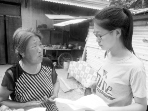 7月2日,河南财经政法大学会计学院9名大学生来到太康县,进行为期7天的“精准扶贫”暑期社会实践。图为学生们在向村民了解情况。