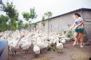 一次偶然的苗木种植技术考察,别人采用的林禽混养模式让豆中艳眼前一亮。她决定在自家林地里进行林下养鹅。鹅的生长期短,体壮肥大;林下食草,成本较低;青草滋养,鹅不易生病,鹅粪还能促进树苗生长。利用林间空地养鹅,既提高了土地利用率,还有利于防疫。说干就干,豆中艳投资10万元在绿化林附近建起了3个标准大棚,引进了5000只三花鹅。
