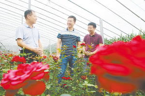 昨日上午,商水县农办“精准扶贫”结对帮扶干部在姚集乡段堤村村民庞冠中的玫瑰棚里,了解玫瑰销售情况。今年以来,商水县在实施“精准扶贫”过程中,选派132名优秀党员干部到贫困村担任第一书记,并与当地贫困家庭结成帮扶对子,帮助他们脱贫致富。刘飞 魏红 摄
