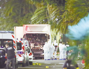 7月14日法国国庆日当晚,一辆卡车冲入南部旅游城市尼斯英国人漫步大道上的人群中,造成至少80人死亡、50余人受伤,伤者中包括两名中国公民。法国总统奥朗德说,这起袭击事件的“恐怖性质”不可否认,并宣布将全国紧急状态延长3个月。