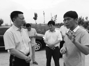 | 汲冢镇围绕“精准识别、精准施策”,根据贫困户致贫原因和脱贫需求,制定扶贫计划,健全扶贫机制,强化扶贫责任,实行分类扶贫,选准脱贫路径。图为该镇党委书记张兴举在和市工商局驻汲冢镇刘庄行政村扶贫工作队交流探讨产业扶贫办法。 记者 卢好亮 摄 |
