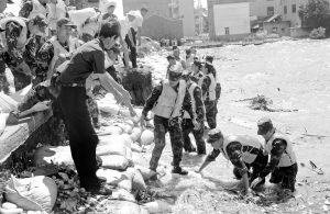 当日,受连日超警戒水位影响,江西省鄱阳县双港镇张家圩大堤出现塌方险情,塌方处长约60米。武警江西总队特战队员集训队60名官兵紧急赶赴现场,在技术人员的指导下,经过4小时的连续奋战,塌方险情得到有效控制。
