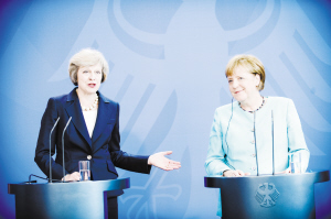 英国首相特雷莎·梅访问德国 7月20日,在德国柏林,德国总理默克尔(右)与英国首相特雷莎·梅出席新闻发布会。当日,英国新任首相特雷莎·梅到访德国首都柏林,并同德国总理默克尔举行了会晤。新华社发