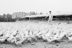 7月20日,项城市莲花办事处荷花养殖专业合作社的饲养员在赶鸭子进鸭棚。据悉,该合作社占地101亩,共有13个鸭棚、6万多只鸭子,每天产蛋500斤左右,年收益300万元。该办事处适应现代生态农业发展的需要,采取合作社带动农户机制,促进了当地水禽养殖的转型升级,生态循环农业的效益显而易见。