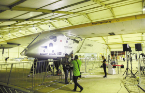 全球最大太阳能飞机环球之旅达成在望 这是7月23日在埃及开罗国际机场拍摄的全球最大太阳能飞机“阳光动力”2号。当日,“阳光动力”2号结束在埃及开罗的停留,启程飞往环球之旅的终点站——阿联酋首都阿布扎比。新华社发