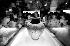 观众参观殷墟博物馆内的文物展品。位于河南省北部的安阳殷墟,是中国第一个有文献记载并为甲骨文和考古发掘所证实的商代都城遗址。2006年,殷墟因具有全球突出普遍价值和良好的管理与展示,被列入《世界遗产名录》。新华社发