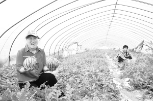 昨日,项城市天禾开心农场瓜农正在采摘西瓜。这个农场是该市润禾种植合作社的一个分社,返租土地120多亩,建西瓜大棚50多个,每亩可获利1万多元。据悉,项城市以农村专业合作社为龙头,大力发展特色农业,带动了农民发家致富。 张永久 摄