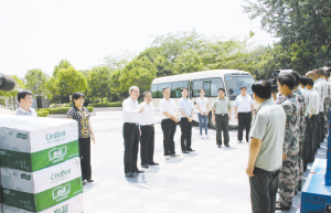 本报讯 在“八一”建军节来临之际,项城市委书记刘昌宇带着党委、政府的关怀和全市人民的深情厚谊,先后来到周口军分区、预备役408团和项城市武警中队、消防大队、人武部,亲切看望慰问人民子弟兵(如右图)。项城市领导韩德平、王玉玲、郭峰、张森、毛磊、任洪安参加慰问。