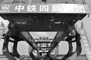 商合杭铁路西山驿特大桥开始架设箱梁 8月8日,中铁四局施工人员在架设西山驿特大桥第一片箱梁。据悉,商合杭铁路起自河南商丘,经安徽亳州、阜阳、淮南、合肥、芜湖、宣城、浙江湖州至杭州,正线长度约794.55公里,设计时速为350公里。新华社发
