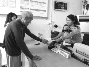 西华县公安局叶埠口派出所为老、弱、病、残、升学等开辟“绿色通道”,让数据多跑腿、群众少走路。图为该所副所长水晶把办好的户口簿送到老人手中。 记者 徐如景 通讯员 何强 摄