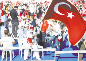 土耳其举行大规模集会反对未遂政变 8月7日,在土耳其城市伊斯坦布尔,一名老者在集会上挥舞土耳其国旗。土耳其主要政党当日在最大城市伊斯坦布尔举行大规模集会,反对上月发生的未遂军事政变,表达团结一致应对危机的决心。