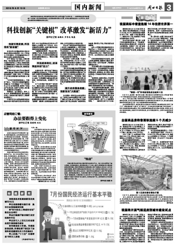 中国科学技术发展战略研究院近期发布的中国区域科技进步评价报告显示,2015年全国综合科技进步水平指数比上年提高2.94个百分点,绝大多数地区有所提升。我国正逐步形成各具特色的区域创新格局。