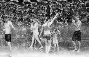 8月13日,市民在四川省泸州市一水上娱乐公园戏水避暑。立秋过后,四川省泸州市出现持续高温天气,“秋老虎”发威,大批市民来到泳池及水上娱乐场所戏水避“虎”。