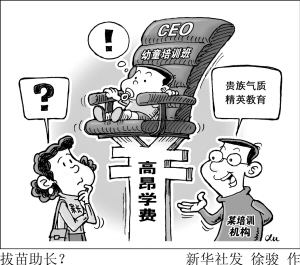学费动辄数万元,宣传广告听着“唬人”,这些带着“贵族气质”“私人订制”色彩的培训是高端大气还是拔苗助长? 新华社发 徐骏 作