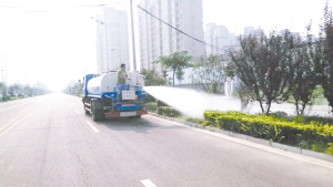 在省级文明县城创建工作中,西华县不断加大财政投入力度,购置了几辆洒水车,每天对县城主街道进行洒水作业,确保城区环境干净整洁。张思 摄