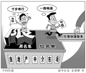让守信者一路畅通,让失信者寸步难行。对诚实守信中介机构和从业人员,要建立“绿色通道”,在办理房源核验、合同网签、代办贷款、涉税业务时,给予方便快捷服务;而对违法违规的中介机构和从业人员,要列为重点监管对象,限制从事各类房地产中介服务。特别是对严重失信中介机构及其法定代表人、主要负责人和对失信行为负有直接责任的从业人员,要实施市场、行业禁入,还房屋交易各方一个风清气正的中介市场。