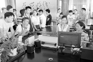 昨日,在淮阳县白楼镇群众工作中心大厅内,公安服务窗口的民警在忙着为群众办理身份证、入户口等事宜。近年来,该县坚持“涉农站所全入驻、服务内容全公开、工作过程全监督”的原则,在18个乡镇群众工作中心设立民政、劳保、计生、农业、国土、城建、公安等10多个服务窗口,让群众零距离享受便捷、高效、优质的公共服务。 记者 侯俊豫 摄