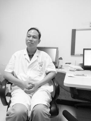 7月中旬的一天午后,我们赶到位于北京朝阳区望京中环南路6号的中国中医科学院望京医院,采访孙永生这位骨科博士后。作为国内骨伤科疾病的中医治疗中心,骨科是望京医院业务量最大的科室。下午2时许,孙永生早已坐诊,按照医院的排班,他是每周一、周四下午在门诊坐诊。近千平方米的候诊大厅坐满了患者,他们都是提前预约排号的,很多是外地患者。窗外下着雨,孙永生和他带的研究生,细致而忙碌地看片子、问病情……为病人认真检查、精心治疗。6时许,门诊下班,患者散去,我们才见到他。