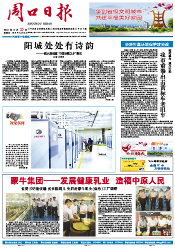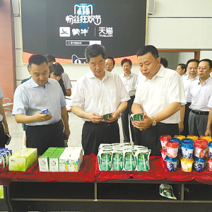 8月20日,省委副书记、省长陈润儿,在省政府秘书长郭洪昌、省发展改革委主任孙廷喜等的陪同下,到蒙牛乳业(焦作)有限公司调研。陈润儿详细了解蒙牛集团的发展战略和焦作公司的发展规划,参观了液态奶、冰淇淋、低温酸奶生产线。陈润儿对蒙牛乳业(焦作)有限公司的发展规划给予充分肯定,希望公司抓住郑州航空港经济综合实验区建设的重大机遇,在焦作实施核心工厂智能化改造、智慧物流仓储园区建设等重点项目,打造蒙牛产品销售南方市场的周转中心,提升乳制品产业集群的集约化水平。