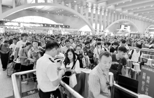 石家庄火车站迎来暑运返程高峰 8月28日,旅客在石家庄火车站检票进站。为期两个月的暑运即将落下帷幕,随着中小学及高校陆续开学,石家庄火车站迎来暑期返程客流高峰,预计8月28日全站将发送旅客12万人次。新华社发