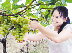 金秋送爽,一名游客在玉桂千亩生态葡萄园采摘葡萄。近年来,我市积极推进农业示范园建设,打造了玉桂千亩生态葡萄园等一批特色农业基地,创新农业旅游融合发展思路,引导特色农业基地开发建设,取得了良好效果。据了解,玉桂千亩葡萄园坚持走规模化、生态化、精品化、绿色化的路子,15种国内优质葡萄品种可持续采摘至9月中下旬。
