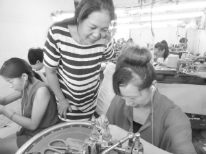 昨日,商水县巴村镇董村返乡农民工王银霞在为留守妇女指导羊毛衫编织技术,王银霞于3年前在镇政府的帮扶下创办了羊毛衫加工厂,安排村里70名留守妇女进厂工作。近两年来,该镇通过产业扶贫、巧媳妇工程帮助返乡农民工创业,并以此为6000多名农村留守妇女和贫困群众提供了致富门路。乔连军摄