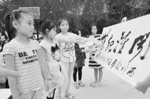 日前,项城市各中小学校已经开学。该市组织书法家走进校园,开展“送书法进校园”活动,培养学生学习书法的兴趣,促进广大师生对书法艺术的认识和理解。图为孩子们正在欣赏书法作品。吴建成 摄