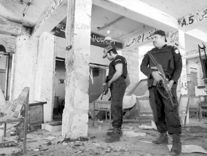 巴基斯坦一法院遭袭 9月2日,在巴基斯坦马尔丹市,安全人员查看炸弹袭击现场。据巴基斯坦马尔丹市警方2日消息,该市一法院外当天上午发生自杀式炸弹袭击,目前已造成至少12人死亡、27人受伤。