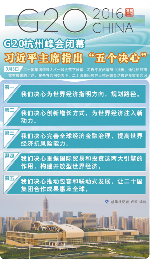 下午5时许,峰会落下帷幕。习近平在闭幕辞中指出,通过热烈而富有成果的讨论,在各方共同努力下,二十国集团领导人杭州峰会达成许多重要共识。