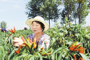 昨日上午,商水县郝岗乡农民正在田间采摘辣椒。今年,该县积极引导群众种植订单辣椒3万余亩,亩均效益4000余元,村民的日子是越过越红火。