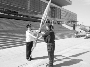 本报讯 “忠诚担当、勇攀高峰、首战用我、用我必胜!” 9月2日,周口市公安局举行特警“猎豹突击队”成立及授旗仪式,周口市政府党组成员、市公安局长王平为“猎豹突击队”授旗(如图)。这标志着周口市公安局首支快速反应处突战斗队伍正式启动勤务运作。