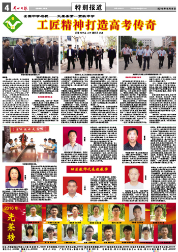 在教研管理方面,该校每位教师每学期都要完成“十个一”工程:研究一个课题,撰写一篇教育教学论文,设计一个优秀教案,开设一堂高质量的公开课,出一份标准高考模拟试卷,设计一份好作业,制作一个优质的教学课件,接受一次业务测试,精读一本教育名著,写好一篇教学总结。“十个一”完成情况成为评价教师工作业绩的重要依据。