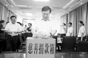会后,县领导马卫东、熊和平、闫冬梅、杨继鲁、李德来、孙培忠等带头将饱含爱心的善款投入到慈善捐款箱。
