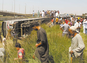 9月7日,在埃及吉萨,人们在脱轨的火车附近聚集。
