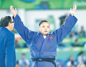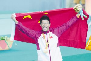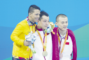 9月10日,中国选手许庆(中)在颁奖仪式上