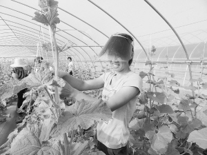 近日,商水县张明乡张明村的妇女正在杨国平的百亩日光温室反季节蔬菜园区管理哈密瓜。杨国平在乡政府的产业扶贫帮助下,通过土地流转创建百亩日光温室反季节蔬菜园区,搭建日光温室60座,今年种植的草莓、西瓜、哈密瓜,亩均收入上万元,并安排20名贫困群众就业。乔连军 摄