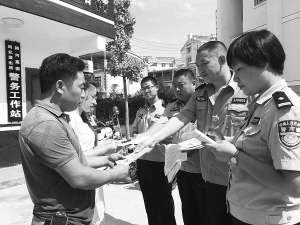 近日,沈丘县公安局河北派出所以“一村一警”社区警务站为依托,积极开展入户走访活动,向群众发放宣传资料3800余份,解答问题40余条,征求意见35余条,为辖区群众营造了安全的生活环境。图为民警在颍河嘉园向群众宣传安全常识。