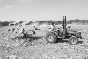 太康县转楼乡千方百计为秸秆找出路,通过统一收集、集中还田、养殖回收、集中堆肥等措施,既解决了秸秆乱堆乱放等问题,又达到了秸秆综合利用的效果。图为该乡利用大型玉米秸秆收集、打捆机械对田间秸秆进行收集打捆作业。