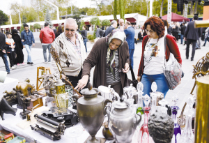 9月28日,在土耳其伊斯坦布尔塔克西姆广场,人们在贝伊奥卢艺术节的古董集市里参观。当日,贝伊奥卢艺术节在土耳其最大城市伊斯坦布尔开幕。