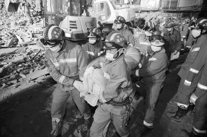 截至记者发稿时,倒塌现场上空下着小雨,救援工作仍在紧张进行。