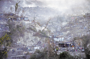 飓风“马修”重创海地 10月10日,海地热雷米在飓风过后满目苍夷。据海地民防局11日公布的最新数据,飓风已造成至少473人死亡、75人失踪、300余人受伤。超过17万人被迫离开家园,目前居住在临时避难所。新华社发
